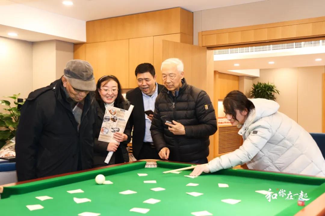 在學(xué)院俱樂(lè)部,放手挑戰(zhàn),玩你所想,桌球游戲讓每一個(gè)長(zhǎng)輩露出了歡樂(lè)的笑容。