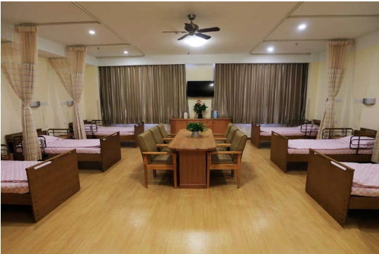 北京市朝陽(yáng)區(qū)頤養(yǎng)天合管莊老年公寓為了全方位的做好服務(wù),公寓內(nèi)設(shè)有監(jiān)控系統(tǒng)、緊急呼叫系統(tǒng)、消防系統(tǒng)及醫(yī)用電梯等,保障了老人的人身和財(cái)產(chǎn)安全;樓內(nèi)通道均為無(wú)障礙設(shè)計(jì),防止老人滑倒的扶手環(huán)繞四壁、設(shè)置殘障專(zhuān)用道、方便老人自由出行。 為了豐富老人的精神文化生活,公寓配備了多功能卡拉oK,點(diǎn)歌器等設(shè)備,建有閱覽室、娛樂(lè)室、健身房、還有輔助老人看書(shū)、讀報(bào)專(zhuān)用的全自動(dòng)電子放大器等。 公寓設(shè)有單人間、雙人間、三人間、五人間等,共有床位80余張,每個(gè)房間配有獨(dú)立衛(wèi)生間,房間內(nèi)配有空氣凈化器、飲水機(jī)、冰箱、高檔家具、暖色隔簾、遙控電視、電話(huà)、無(wú)線(xiàn)呼叫系統(tǒng)等。