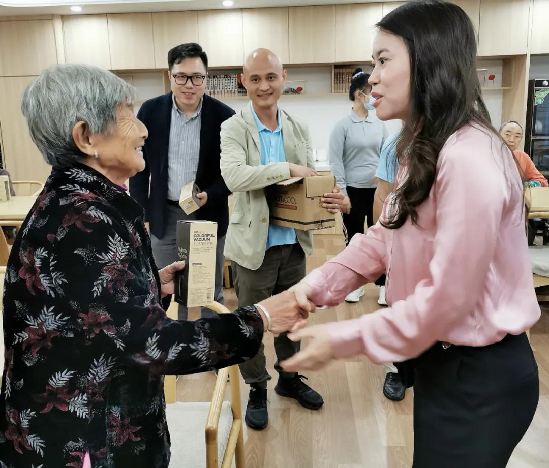 馮總同長者們親切交談,對長者的身體情況和生活狀況進行了細致的詢問,并為他們送上了精心準備的保溫杯,希望長者們在悅年華能夠感受到滿滿的溫暖,祝福悅年華的長者身體健康,笑口常開。